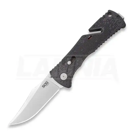The SOG Trident uses well-proven means of delivering a knife blade to the open position with S.A.T. (SOG Assisted Technology™) Now using patent pending Arc-Actuator™, the Trident locks stronger and releases easier. There is also a built-in safety to lock the blade closed. When it shows red, you are ready to go.